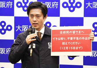 また「クラスター(感染者集団)が発生したり、外来を閉じたりしている病院もある」と医療崩壊の兆候に言及し、「緊急事態宣言が出た春先のような危機感をみんなが持ち、行政も強力なメッセージを出すべきだ」と述べ、京阪神での移動制限の必要性も主張した。【近藤諭、松本光樹】